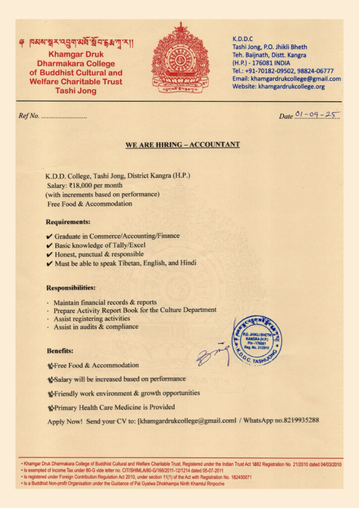 འདི་ག་འཕགས་ཡུལ་ཁམས་སྒར་འབྲུག་མཐོ་སློབ་དྷརྨ་ཀཱ་རར་བོད་ཟླ་༦་པའི་ཚེས་༡༥ ལ་དབྱར་གནས་ཀྱི་སྟ་གོན་དང་། དེ་རིང་སྔ་དྲོ་ནས་ཟླ་བ་གཅིག་དང་ཕྱེད་རིང་ལ་བཤད་གྲྭའི་དགེ་སློང་ཉི་ཤུ་རྩ་གསུམ་དང་། དགེ་ཚུལ་དྲུག་ཅུ་རེ་དྲུག་ཙམ་གྱིས་དབྱར་གནས་པར་ཁས་བླངས་གནང་སོང་། དབྱར་གནས་པའི་དགོས་པ་དང་ཕན་ཡོན།འདུལ་བ་ལས། ༡༽དབྱར་གནས་མ་བྱས་པའི་ཉེས་པ་ཁེགས་པ་དང་། ༢༽དབྱར་ས་གཞི་ལ་སྲོག་ཆགས་ཕྲ་མོ་མང་དུ་རྒྱུ་བའི་དུས་སུ་འགྲོ་འདུག་མང་པོ་བྱས་ཏེ་སྲོག་ཆགས་ལ་གནོད་པས་སྲོག་ཆགས་ལ་གནོད་པ་སྤོང་བ་དང༌། ༣༽གླེང་གཞི་ལས་འབྱུང་བ་ལྟར་མུ་སྟེགས་ཅན་སོགས་གཞན་མ་དད་པ་དག་གིས་འཕྱ་བ་སྤོང་བ་དང༌། ༤༽དབྱར་ཆར་ཆུ་རྒྱས་པའི་དུས་སུ་རྒྱུ་འགྲུལ་མང་པོ་བྱས་ན་རང་གི་ལུས་སྲོག་ལ་གནོད་པ་འབྱུང་ཉེན་ཆེ་བ་ལུས་སྲོག་ལ་གནོད་པ་སྤོང་བ་དང༌། ༥༽དོན་དང་བྱ་བ་མང་པོ་སྤངས་ནས་དོན་ཉུང་ཞིང་བྱ་བ་ཉུང་ངུས་དབྱར་གནས་པར་བྱ་བ་དང༌། ༧༽དབྱར་གྱི་དུས་སུ་གནས་ཁང་དོར་ཏེ་ཐག་རིང་པོར་ཕྱིན་ན་གནས་ཁང་རལ་བ་དང་གྲུམས་པ་སོགས་ཀྱི་སྒོ་ནས་ཆུད་ཟ་བར་འགྱུར་བས། གནས་རལ་བ་དང་གྲུམས་པ་འཆོས་པར་འགྱུར་པ་དང༌། ༨༽དབྱར་གནས་ལ་བརྟེན་ནས་དགག་དབྱེ་དང་སྲ་བརྐྱང་འབྱུང་བ་སོགས་ཕན་ཡོན་ཤིན་ཏུ་མང་ངོ༌།། • དེ་ཡང་དབྱར་ཁྲིམས་སུ་བྱ་བ་ནི། • …